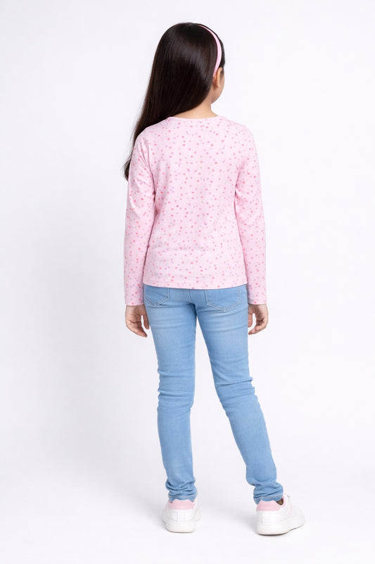 Girls Full Sleeve Heart All Over Print Tshirt Pack of 1