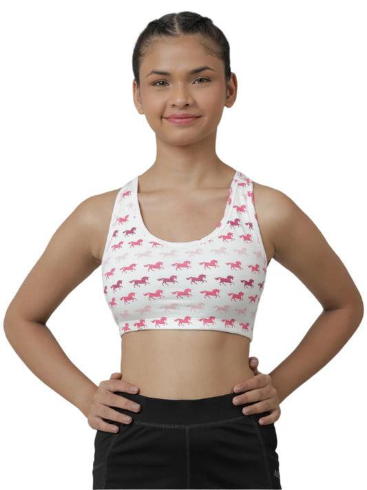 Sports Bra -Solid Colour & Horse All over Print combo of 3